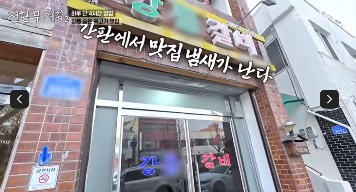- 전현무계획2 31회에서 전현무, 김성균, 곽튜브가 방문해 “강릉 해산물만 유명한 줄 알았는데, 소갈비도 진짜 강하다”며 극찬 - 45년 노포의 내공이 담긴 단짠 밸런스 양념, 부드럽고 풍미 가득한 육질 - 직접 손질한 고기, 주방 오픈형 운영으로 신뢰도 높음 - 김치·쌈채소 등 곁들임도 정성 가득, 된장찌개까지 맛있다는 평 많음 - 저녁 5시 오픈, 4시간만 영업, 예약 없이 방문 시 웨이팅 필수