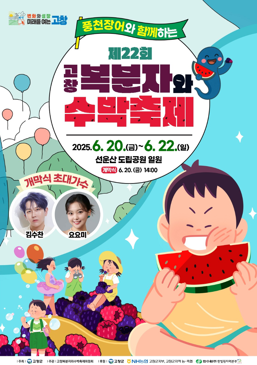 🍉 2025 고창 복분자와 수박축제 6월 20일(금)~22일(일) 고창군 일원, 복분자 수확체험부터 수박 빨리먹기, 먹거리장터까지!