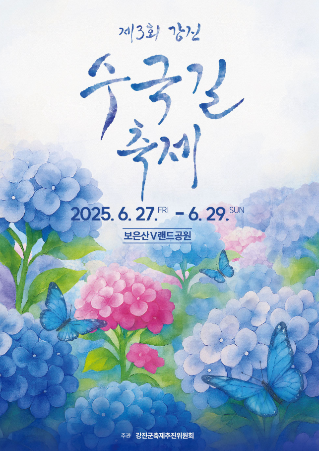 2025년 여름, 단 3일 동안만 열리는 전라남도 강진의 대표 꽃축제가 돌아옵니다. ‘강진 수국길축제’는 올해로 3회를 맞이하며, 보은산 자락을 따라 조성된 약 8km 길이의 수국길을 중심으로 펼쳐집니다.